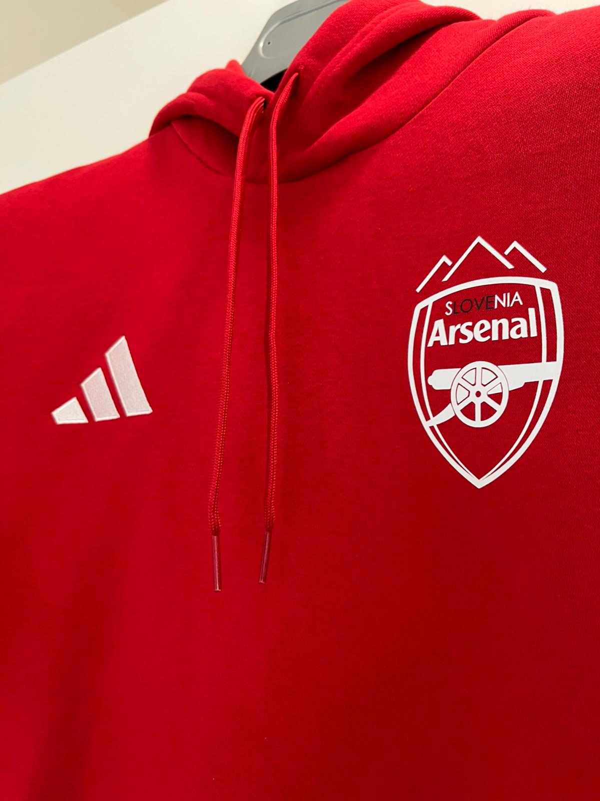 Navijaški klub Arsenal Slovenija ponosno predstavlja nov pulover s kapuco, ki je bil že dolgo želja številnih članov in navijačev topničarjev na sončni strani Alp.