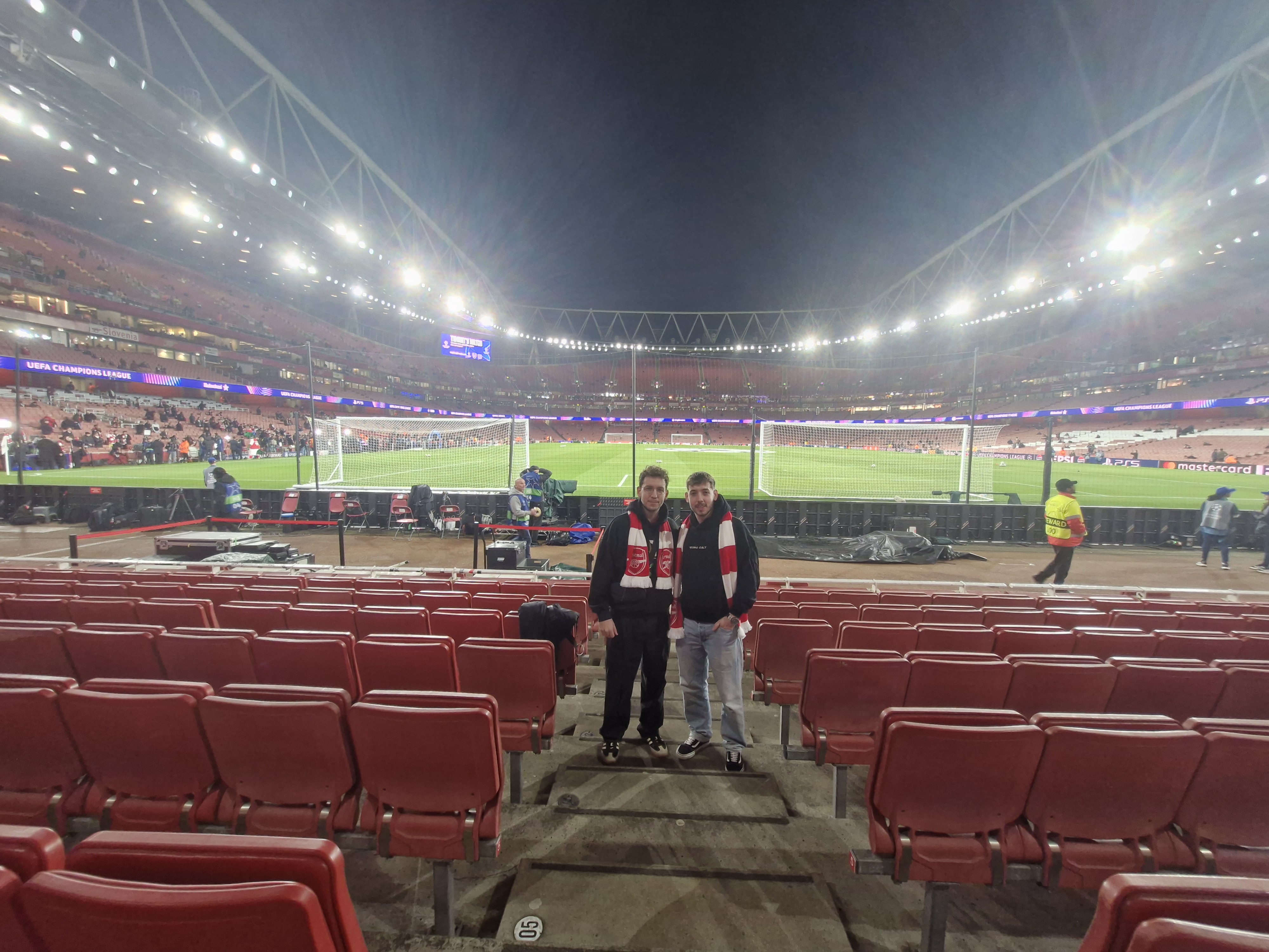 Po dvajsetih letih navijanja in številnih poizkusih obiska tekme Arsenala, se nama je z bratom končno posrečilo in to kar odločilna tekma izločilnih bojev Lige prvakov. V London sva potovala kar na dan tekme in po kratkem postanku v hotelu in hitrem fish&chips sva se že odpravila na sever Londona. Na poti s postaje podzemne železnice sva zavila še mimo starega Highburyja, nato pa do Emiratesa in po nove navijaške šale. Vzdušje in optimizem sta bila na vrhuncu, kljub bledi predstavi Arsenala na gostujoči tekmi. Še hitro pivo in nato do odličnih sedežev tik za gostujočim golom. Ker je šlo za tekmo Lige prvakov, je imel večer še posebno pomembnost in takoj po koncu North London Forever je sledil še ognjemet. Sploh v prvem polčasu sva imela cudovit pogled na desno krilo, kjer je znova in znova prodiral Saka, celotno izkušnjo pa je zagotovo kronal "tisti" Ezejev zadetek tik pred nama, ki bo zagotovo ostal v spominu Arsenalovih navijačev še dolgo asa. In sedaj lahko rečem, da sem bil takrat le nekaj metrov stran. Med polčasom smo na ekranih znotraj stadiona ob glasnem navijanju gledali še kopico golov, ki jih je v tem času doma prejel Chelsea, kar je vzdušje še popestrilo. Rice je poskrbel za miren zaključek tekme in rajanje ob napredovanju se je lahko začelo. Še pijača po tekmi, potem pa pot proti hotelu. Na poti sta naju ustavila še dva razočarana navijača Chelsea, s katerima sva imela civilizirano, a zelo živahno debato o resnični "barvi" Londona. Naslednji dan pa takoj na dopoldanski let proti Benetkam. Res čudovitih 24ur v Londonu, ki bodo ostale v spominu za vedno.