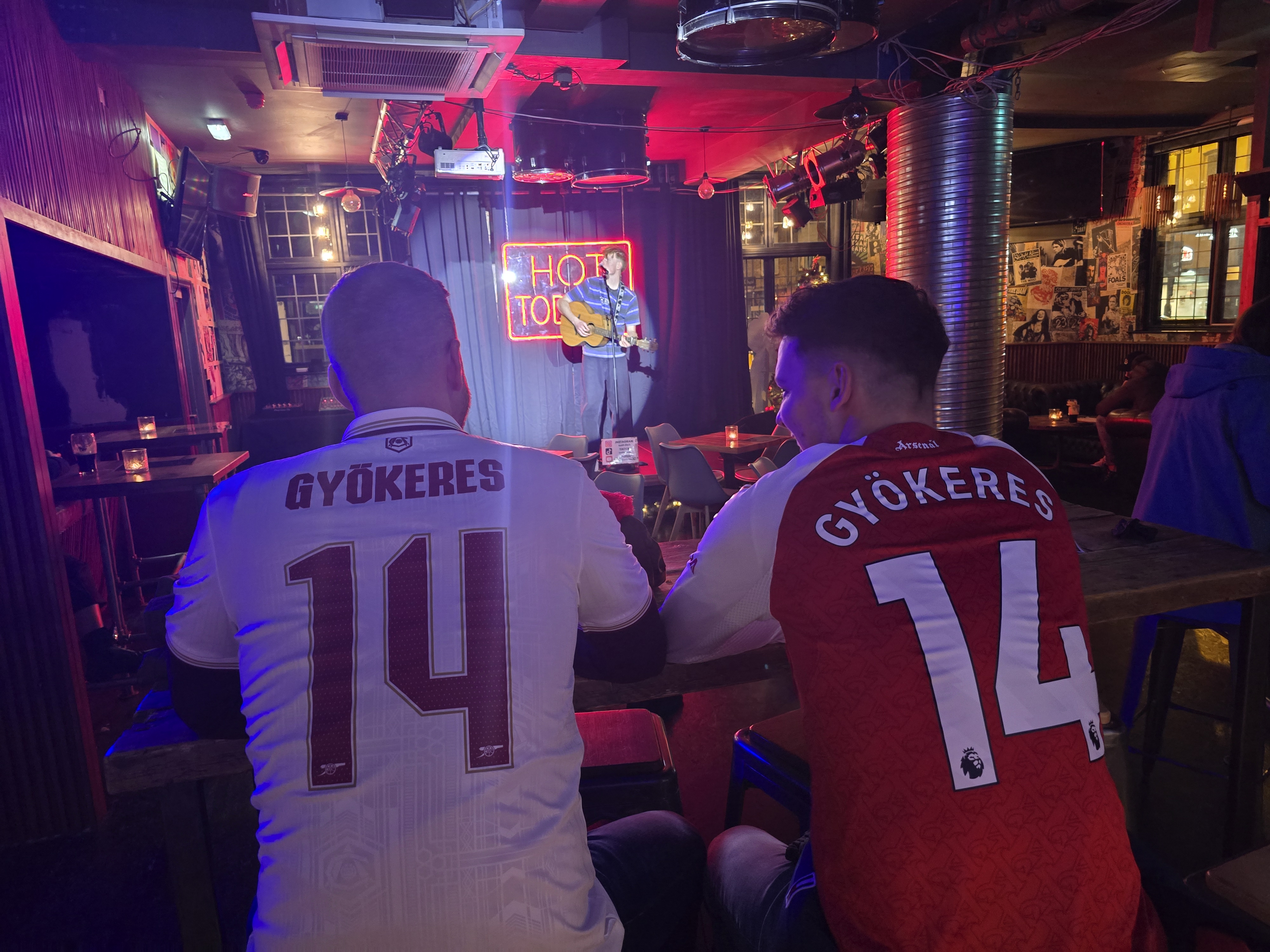 Napetost je naraščala, čas je bil za prvo pivo in pot proti severnem Londonu. Pred tekmo smo si ogledali naš stari stadion Highbury in naredili krog okrog stadiona. V dilemi med Armoury-jem in Tollingon-om smo na našo kasnejšo žalost izbrali slednjega. Lokal je bil poln, vzdušje dobro, pivo pa je dobro teklo. Skoraj bi bili priča temu, kako bi City izgubil točki. To se žal ni zgodilo, zato smo nekoliko slabovoljno krenili proti stadionu. Vstop je bil hiter in brez problemov, kot vedno.