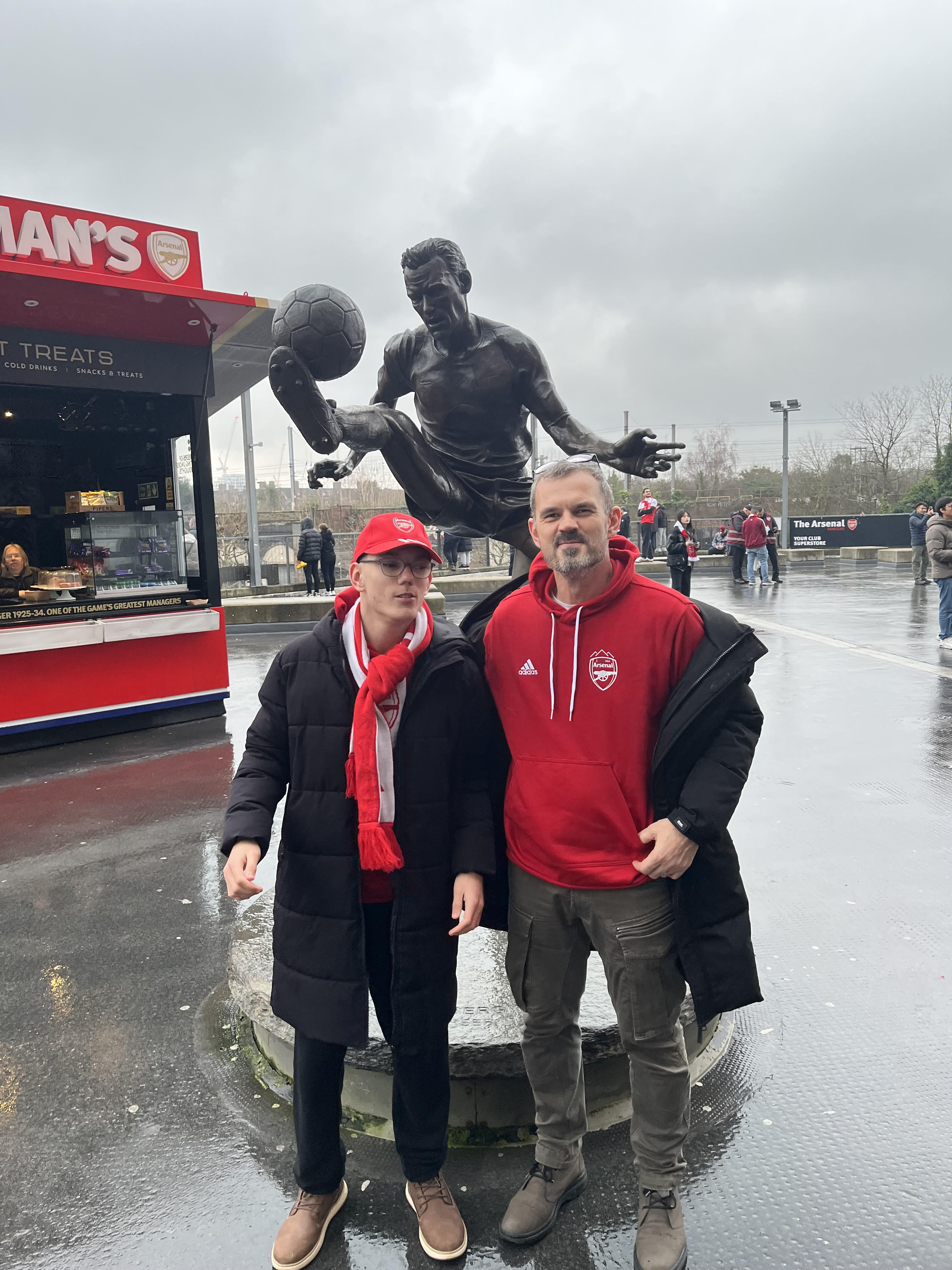 Ko sva prišla v London sva se nastanila v hotelu, ki je bil samo 15- minut odaljen od stadiona. Po nastanitvi sva si privoščila še fish and chips, ki sva ga z veseljem pojedla. Po kosilu sva se odpravila proti stadionu in kot sva pričakovala je bilo vse rdeče-belo in vzdušje že nekaj kilometrov pred stadionom je bilo odločno. Ljudje so se zbirali tudi pred bari… Vzdušje je bilo odlično in videlo se je da bo zelo napeto.